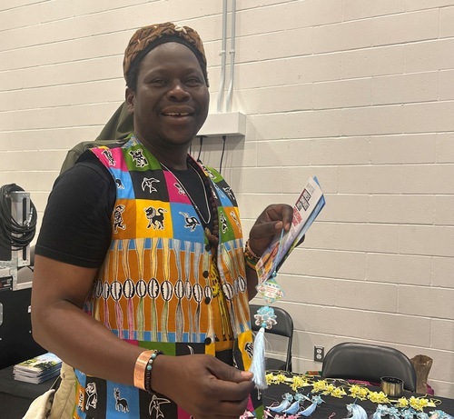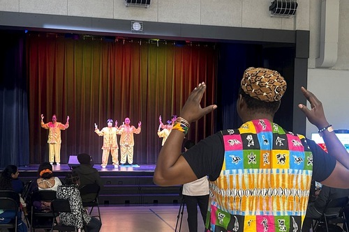 Wandara Topzo, un percussionista dell'Africa centrale, che si esibisce spesso in occasione di eventi comunitari, ha guardato la dimostrazione degli esercizi dei praticanti, e ne ha imitato i movimenti.