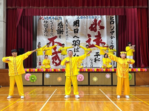 (Minghui.org) Lo scorso 9 novembre, i praticanti della Falun Dafa hanno partecipato alla festa del Centro Comunitario Gionnishi a Hiroshima, in Giappone. L'evento ha segnato il 40° anniversario del centro comunitario, oltre agli spettacoli sul palco, c'erano bancarelle di cibo speciale, artigianato e vari prodotti, che hanno attirato molti residenti.