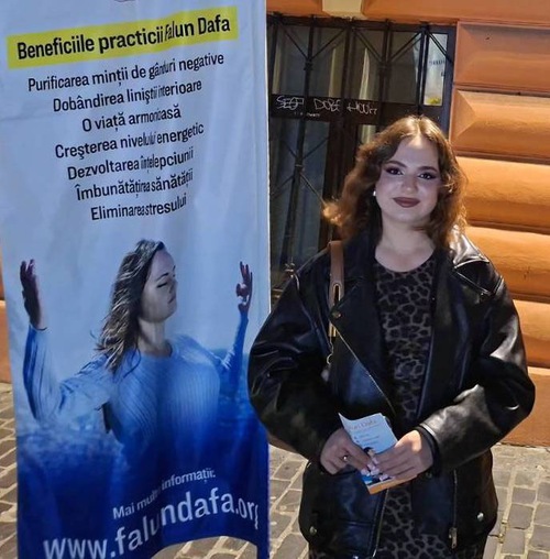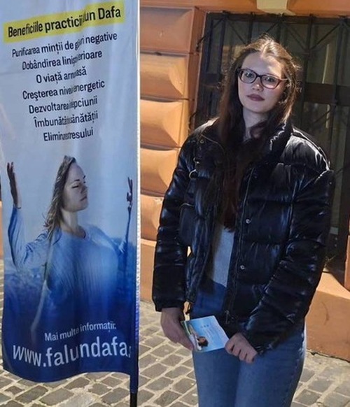 Irina Vatagu, studentessa della Facoltà di lettere di Brașov, ha raccontato che lo striscione e la musica hanno attirato la sua attenzione, così si è avvicinata allo stand. "La prima volta che ho sentito questa musica, mi sono chiesta cosa stesse succedendo, perché di solito non si vedono cose del genere in centro città, poi ho iniziato a leggere lo striscione e ho pensato che fosse una causa piuttosto valida, quindi ho firmato la petizione", ha spiegato, vedendo i valori della Falun Dafa come un rimedio per una società equilibrata che avvantaggia i suoi membri.