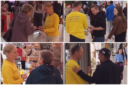 I praticanti hanno parlato alle persone interessate dei principi di Verità, Compassione e Tolleranza, e del fatto che in Cina, sotto il regime comunista cinese, i praticanti della Falun Dafa sono perseguitati per il loro credo. Alcune persone hanno riferito di aver sentito parlare della Falun Dafa su Internet.
