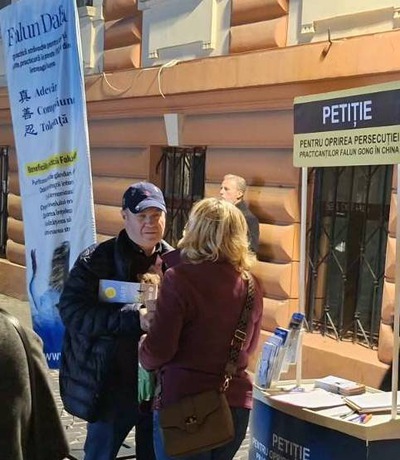 (Minghui.org) Dal 23 al 25 ottobre, i praticanti della Falun Dafa, hanno allestito uno stand informativo all'EXPONATURA 2025 al VIVO Mall Constanța. Il 1° novembre hanno organizzato un evento simile nel centro storico di Brașov, hanno distribuito materiale informativo ai passanti, parlato con le persone e raccolto firme per una petizione che chiede di fermare la persecuzione della Falun Dafa (nota anche come Falun Gong) da parte del Partito Comunista Cinese (PCC).