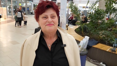 Il 1° novembre, Irina Vatagu allo stand della Falun Dafa a Brașov