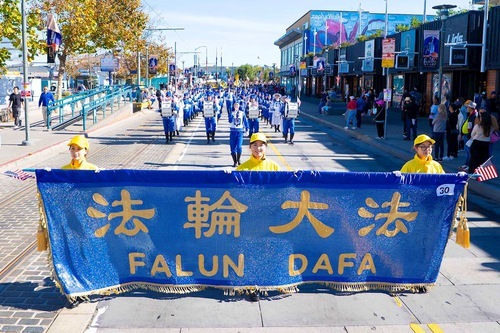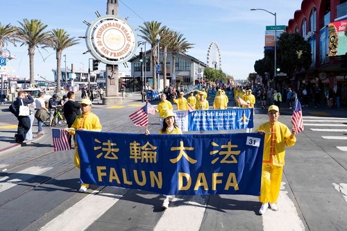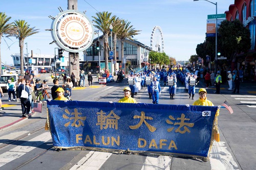 (Minghui.org) Lo scorso 9 novembre, i praticanti della Falun Dafa sono stati invitati a partecipare alla parata del Giorno dei Veterani a San Francisco. La loro esibizione ha ricevuto grandi elogi dagli organizzatori della parata e dagli spettatori.