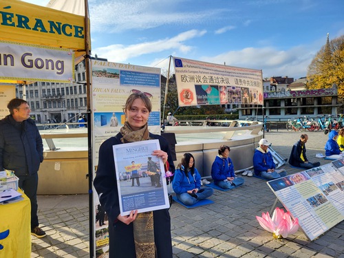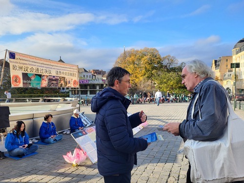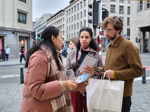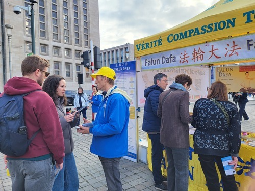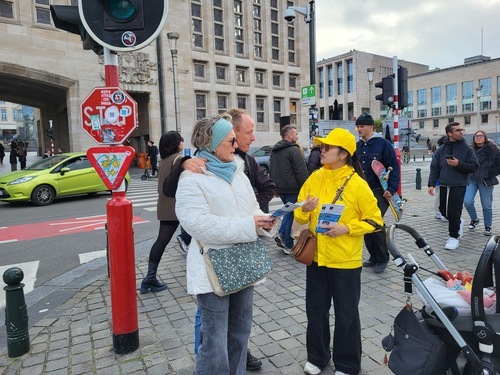(Minghui.org) Lo scorso 8 novembre, i praticanti della Falun Dafa hanno organizzato un evento in Piazza Albertine per sensibilizzare l'opinione pubblica sulla persecuzione del Partito Comunista Cinese (PCC). Molte persone hanno accettato i volantini, e hanno espresso il desiderio di imparare la Falun Dafa (nota anche come Falun Gong).