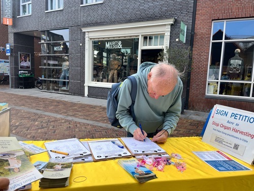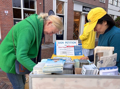 Un uomo proveniente dal Portogallo era in visita da un suo amico a Wassenaar, ha riferito ai praticanti in un cinese fluente che insegnava storia cinese moderna, e che era a conoscenza della persecuzione della Falun Dafa in Cina, poi ha preso una copia dei Nove Commentari sul Partito Comunista, e altri opuscoli in cinese.