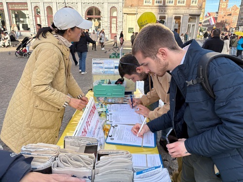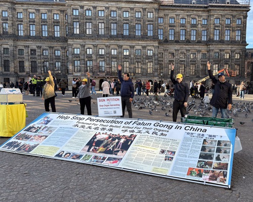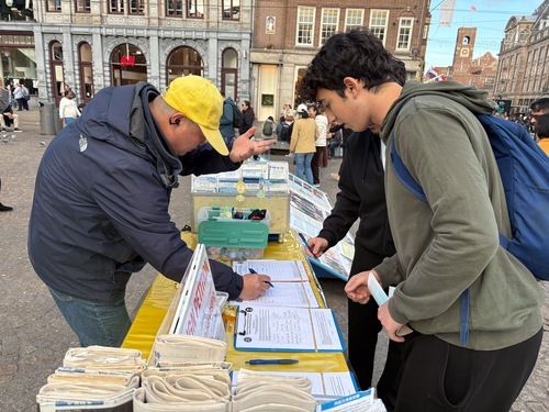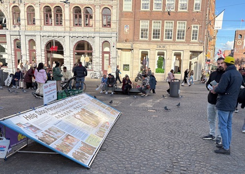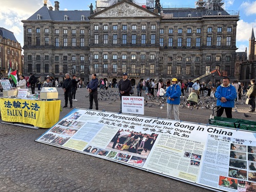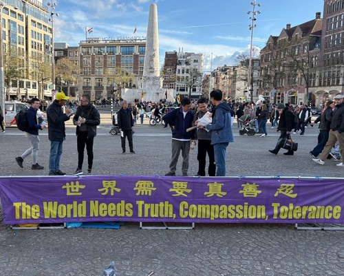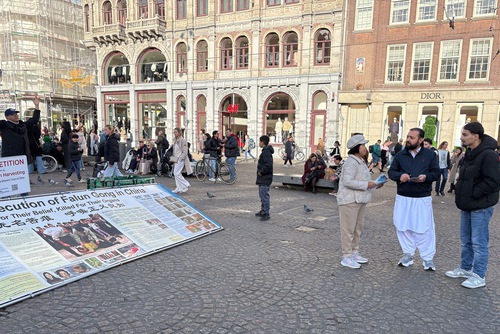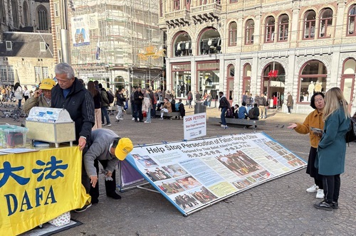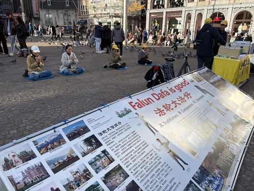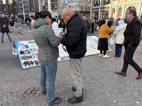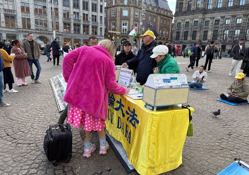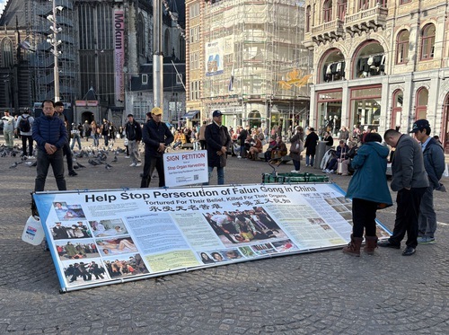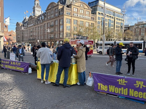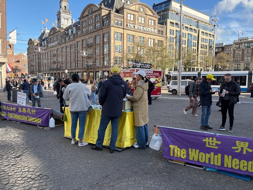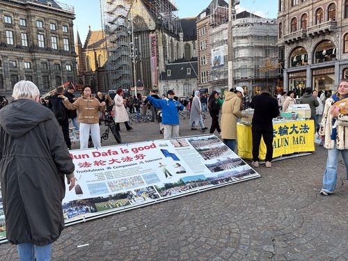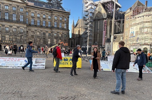 (Minghui.org) Lo scorso 9 novembre, i praticanti della Falun Dafa hanno organizzato un'attività in Piazza Dam ad Amsterdam, che è stata storicamente un luogo in cui persone di diversa provenienza si riunirono per condividere la loro storia con il pubblico, un ambiente adatto per l'evento dei praticanti volto a sensibilizzare l'opinione pubblica sulla persecuzione del Partito Comunista Cinese (PCC) in Cina.