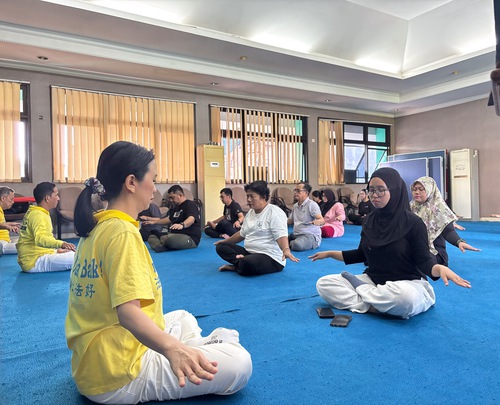Venerdì 31 ottobre, i praticanti sono stati invitati a presentare la Falun Dafa al personale dell'ufficio del sottodistretto di Kembangan, a Giacarta Ovest. L'evento si è svolto al mattino, dalle 7:30 alle 9:30, è iniziato con la presentazione della Falun Dafa, condividendo la storia e raccontando le loro esperienze personali prima di iniziare a praticarla.