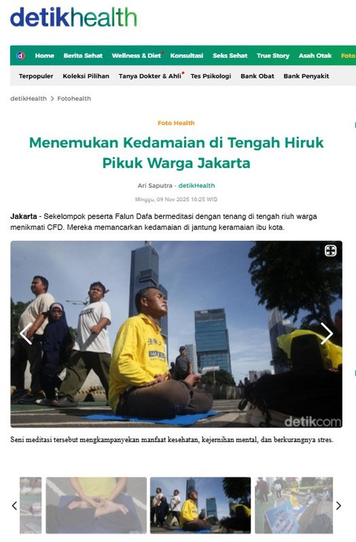 Un media nazionale online ha riportato le attività dei praticanti: “Trovare la pace nel trambusto dei residenti di Giacarta. Un gruppo di partecipanti alla Falun Dafa ha meditato pacificamente in mezzo alla folla frenetica che si godeva la Giornata senza auto, hanno irradiato pace nel cuore della frenetica capitale”.