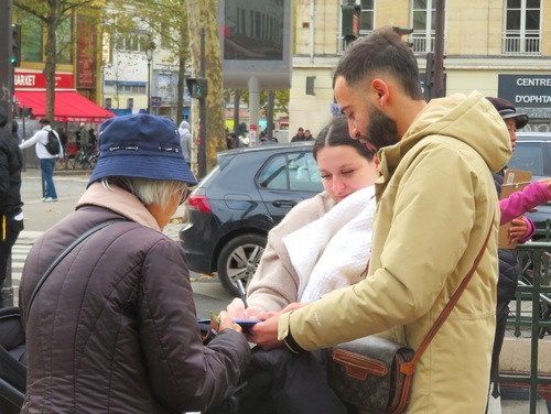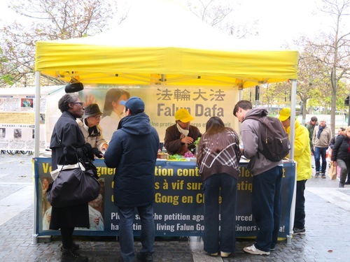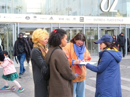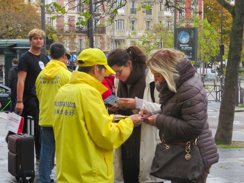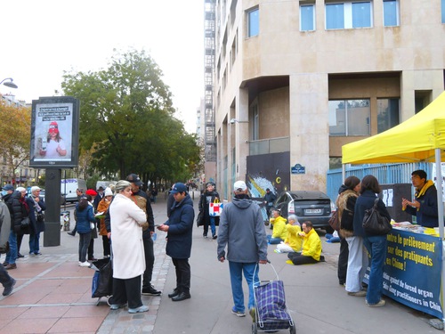 (Minghui.org) Lo scorso 8 e 11 novembre, i praticanti della Falun Dafa hanno organizzato delle attività a Piazza d'Italia e Belleville, a Parigi, e a Colmar, nella Francia orientale, per presentare la Falun Dafa (nota anche come Falun Gong), e sensibilizzare l'opinione pubblica sulla persecuzione della pratica da parte del Partito Comunista Cinese (PCC). Molte persone hanno parlato con i praticanti, e hanno appreso delle violazioni dei diritti umani che stanno avvenendo in Cina.