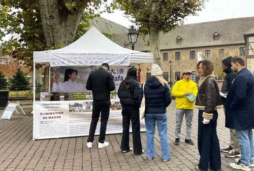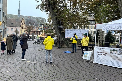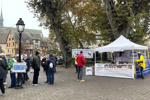 I praticanti della Francia orientale hanno organizzato un evento nel centro di Colmar l'8 novembre, i residenti locali e i turisti hanno imparato a conoscere la Falun Dafa, e molti hanno firmato la petizione che chiede di fermare il prelievo forzato di organi.