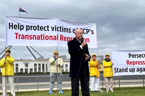 John Deller, portavoce dell'Associazione Falun Dafa Australia, ha dichiarato nel suo discorso durante la manifestazione: "La repressione transnazionale è una forma di repressione che attraversa i confini, proviene dalla Cina attraverso il sistema del Partito Comunista Cinese ed è molto estesa."