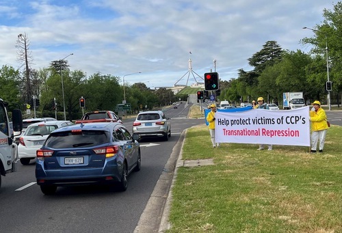 (Minghui.org) Il 28 ottobre i praticanti del Falun Gong provenienti da varie parti dell'Australia si sono riuniti a Canberra, la capitale, davanti al Parlamento, per un raduno pacifico. Si tratta di una delle attività organizzate nell'ambito di una serie di eventi che si sono svolti nell'arco di quattro giorni, a partire da lunedì 27 ottobre, per denunciare il prelievo di organi e la crescente repressione transnazionale da parte del Partito Comunista Cinese (PCC), che prende di mira le organizzazioni governative, i membri federali e il pubblico.