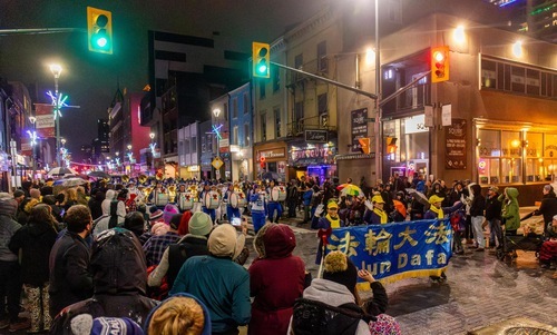 (Minghui.org) Anche se manca più di un mese al Natale, le festività natalizie sono già iniziate in Ontario, dove ogni anno si tengono diverse parate, e la Tian Guo Marching Band è stata invitata a partecipare a cinque di esse. La banda ha suonato nella parata di Newmarket alle 11:00 dello scorso 15 novembre, e a Hamilton e Londra nel pomeriggio e nella serata dello stesso giorno, poi ha partecipato alla parata di Milton alle 13:30 del 16 novembre, dopodiché si è recata a Newcastle per partecipare alla parata delle 17:30.