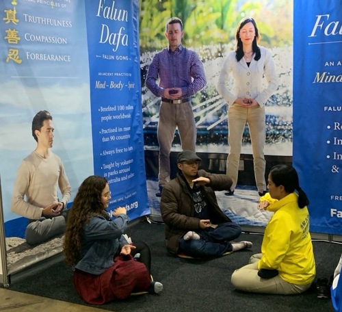 (Minghui.org) Il 14, 15 e 16 novembre, il Mind-Body-Spirit Festival si è tenuto al Melbourne Convention Centre. Si tratta della più grande fiera dedicata alla salute, e data la sua popolarità, si tiene due volte all'anno, a giugno e a novembre. I praticanti della Falun Dafa hanno partecipato nuovamente al festival, e hanno presentato la pratica spirituale ai visitatori.