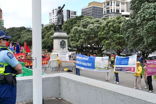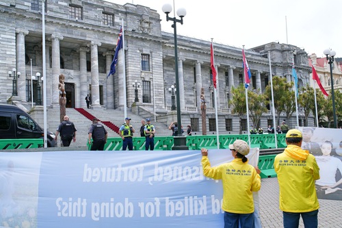 I praticanti del Falun Gong hanno organizzato una protesta pacifica davanti al Parlamento neozelandese durante la visita di Zhao Leji del 20 novembre