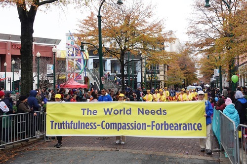 (Minghui.org) Lo scorso 22 novembre, i praticanti della Falun Dafa sono stati invitati a partecipare alla parata del Ringraziamento della contea di Montgomery a Silver Spring, nel Maryland, l'unica parata nell'area metropolitana di Washington. La parata si è svolta con la partecipazione di oltre 200 gruppi.