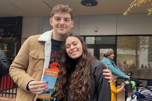 Era la prima volta che sentivano parlare della Falun Dafa, dopo aver visto lo striscione con la scritta “Il mondo ha bisogno di Verità-Compassione-Tolleranza”, Eli ha ribadito: “Abbiamo davvero bisogno di questi principi, sono completamente d'accordo”. Anche Allie lo era.