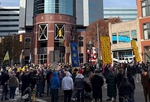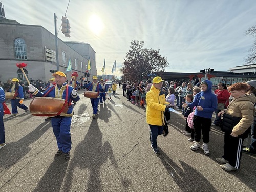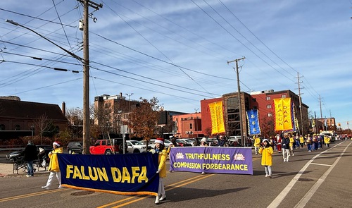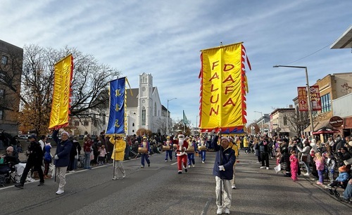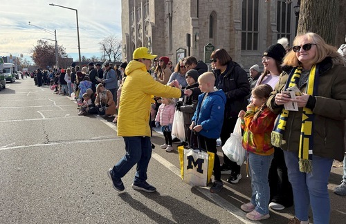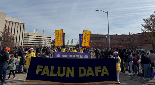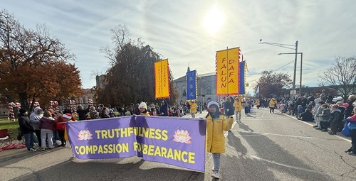 (Minghui.org) Lo scorso 22 novembre, i praticanti della Falun Dafa hanno partecipato alla 63ª Parata natalizia di Maple Hill a Kalamazoo, Michigan. La gente ha apprezzato molto le loro esibizioni, e i principi della Falun Dafa, Verità-Compassione-Tolleranza.