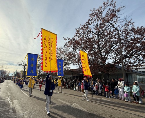 Oltre 90 gruppi della comunità, vestiti a festa, hanno partecipato alla parata, un numero record di oltre 30.000 persone si è radunato lungo le strade per assistere al popolare evento. I praticanti della Falun Dafa, vestiti con colori vivaci, spiccavano mentre suonavano i tamburi della dinastia Tang, e portavano grandi striscioni con la scritta “Falun Dafa” e “Verità, Compassione, Tolleranza”. La gente ha letto gli striscioni, scattato foto, salutato i praticanti, e alzato il pollice in segno di approvazione.
