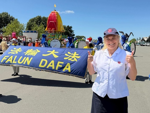 Uno dei volontari della parata, Mark Scaife, ha elogiato l'ingresso dei praticanti della Falun Dafa