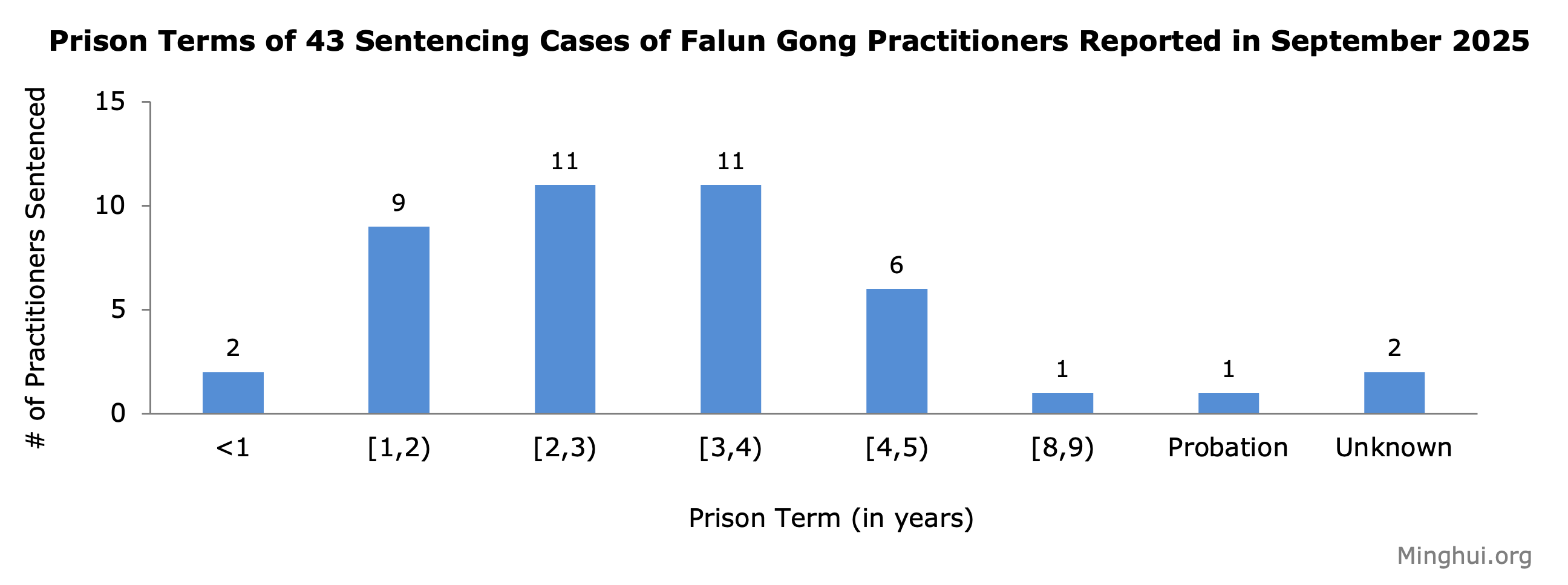 (Minghui.org) Nello scorso mese di settembre sono stati segnalati in totale 43 casi di praticanti del Falun Gong condannati alla prigione per la loro fede.
