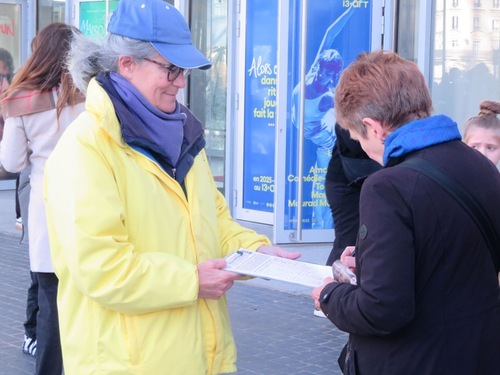 L'assistente sociale Nathalie è passata davanti all'evento dei praticanti, ed è rimasta costernata nell'apprendere della persecuzione del Falun Gong da parte del PCC, e del prelievo forzato di organi: "Questo prelievo arbitrario di organi umani è assolutamente folle! Le vittime ci moriranno", ha detto e aggiunto che avrebbe condiviso queste informazioni e i video sulla sua pagina web, per sostenere il Falun Gong il più possibile. Prima di andarsene, ha detto ai praticanti: "Grazie per essere venuti e per aver avuto il coraggio di far conoscere la verità. Buona fortuna!"