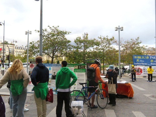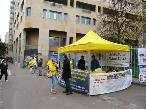Il 28 ottobre, i praticanti hanno organizzato un'altra giornata informativa a Belleville, Parigi, che ha attirato molti residenti, che si erano recati al mercato per fare la spesa.