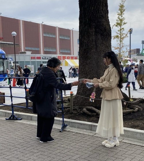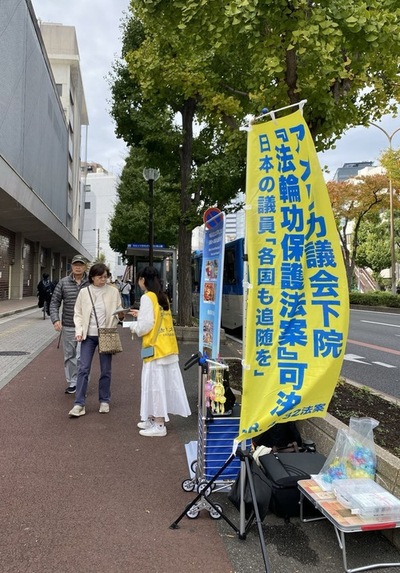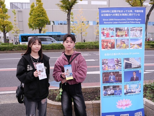 Il Festival dei cittadini è un evento importante nella città di Kawasaki, nella prefettura di Kanagawa, che dura tre giorni e attira quasi 500.000 visitatori. I praticanti hanno esposto striscioni e manifesti vicino alla sede dell'evento con messaggi come “La Falun Dafa è buona”, “La verità sul prelievo forzato di organi da parte del PCC”, e hanno distribuito materiale informativo nei principali incroci.