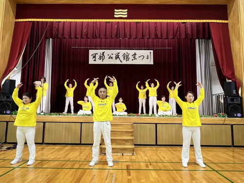 Il 2 novembre, i praticanti del Falun Gong hanno partecipato al 52° Festival del Centro Comunitario Kōbe della città di Hiroshima, presentando il Falun Gong sul palco, e dimostrando la serie di cinque esercizi. Quasi tutti i membri del pubblico li hanno seguiti, l'atmosfera era pacifica, e dopo l'evento alcune persone hanno chiesto informazioni sui luoghi di pratica locali, mentre altri si sono offerti di aiutare i praticanti.