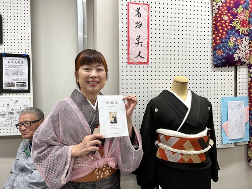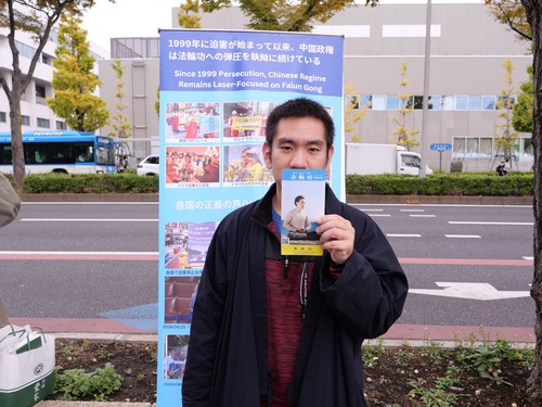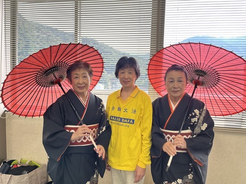 Dopo aver parlato con i praticanti e aver appreso informazioni sul Falun Gong, la signora Yasuda, istruttrice del gruppo “Kimono Beauty”, ha affermato di condividere i principi di Verità, Compassione e Tolleranza, e ha riferito che nel suo giorno libero sarebbe andata alla classe di insegnamento presso il Centro Comunitario Kobu, per imparare gli esercizi e scambiare informazioni di contatto con i praticanti.