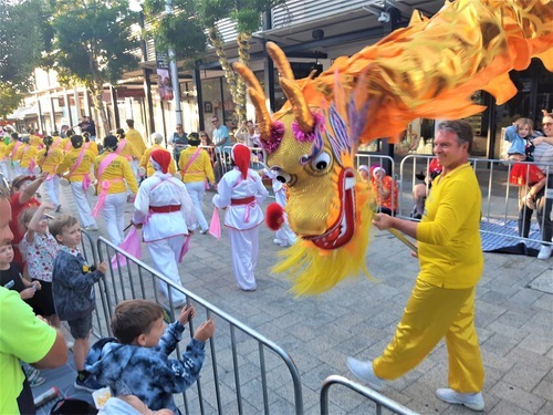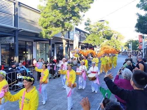 Il gruppo della Falun Dafa includeva fanciulle fatate, tamburini cinesi e spettacoli di danza del drago. Molte persone lungo il percorso della parata li hanno applauditi, elogiati e hanno registrato video delle esibizioni dei praticanti, alcune hanno persino ballato a ritmo di musica e tamburi. La gente ha elogiato i colori vivaci e l'energia pacifica dei praticanti, e molti li hanno ringraziati per la loro partecipazione.