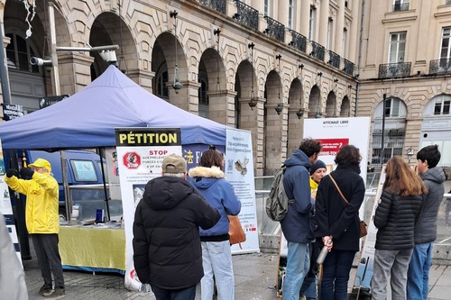 Il 6 dicembre i praticanti hanno organizzato un evento informativo in Place de la République a Rennes, capitale della Bretagna nel nord-ovest della Francia, che ha attirato molti passanti, alcuni dei quali hanno scattato foto dell'evento e dei cartelloni informativi.