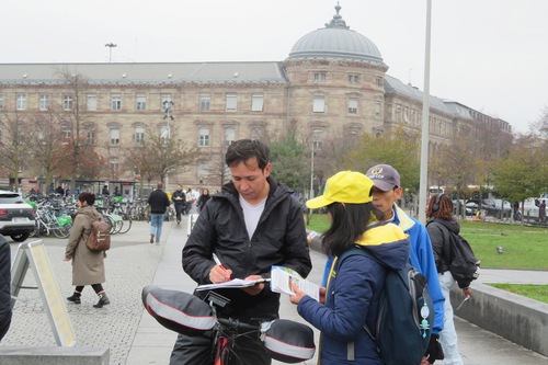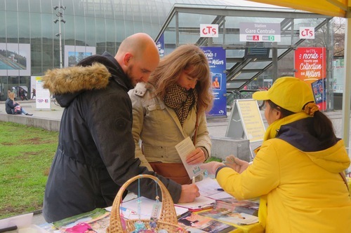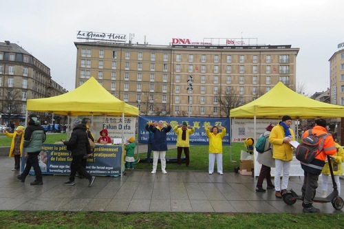 Dal 5 al 7 dicembre, i praticanti hanno presentato la Falun Dafa nella piazza antistante la stazione ferroviaria di Strasburgo. Molte persone hanno firmato la petizione che chiede la fine della persecuzione in Cina