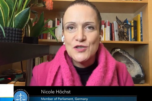 Nicole Höchst, membro del Parlamento tedesco, ha affermato: “Abbiamo urgente bisogno di discutere una questione, che riguarda le fondamenta stesse della nostra civiltà: l'inviolabile dignità della persona umana, di ogni essere umano, ricco o povero, che viva in sicurezza o sotto un regime autoritario, cristiano, praticante del Falun Gong, vittima di guerra o prigioniero politico”.