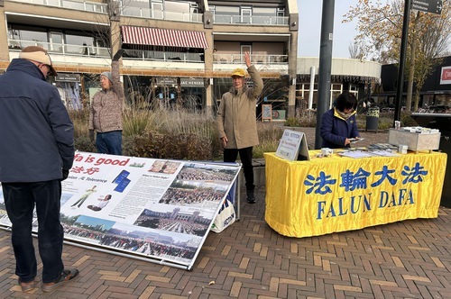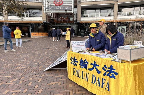 Il 22 novembre intorno a mezzogiorno, i praticanti hanno installato dei pannelli espositivi in Hoogstraat, hanno dimostrato gli esercizi, distribuito volantini e parlato dei 26 anni di persecuzione del Partito Comunista Cinese (PCC) in Cina. Le persone hanno anche firmato una petizione che chiede la fine della persecuzione del PCC, e dell'atrocità del prelievo forzato di organi sancito dallo Stato cinese.