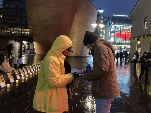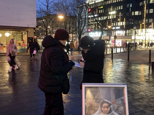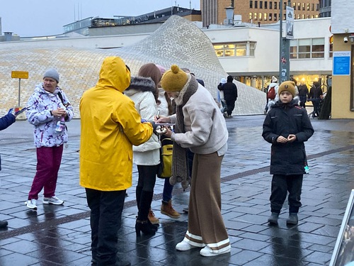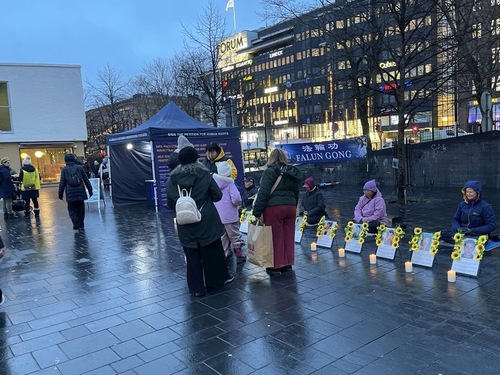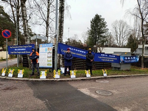 Il 4 dicembre, in occasione della Giornata dei diritti umani, i praticanti della Falun Dafa della Finlandia hanno protestato in modo pacifico davanti all'Ambasciata cinese di Helsinki per condannare i 26 anni di persecuzione della loro disciplina spirituale da parte del Partito Comunista Cinese (PCC). Il 10 dicembre hanno anche organizzato una veglia a lume di candela a Kamppi, per commemorare i compagni praticanti morti durante la persecuzione e per invitare la popolazione finlandese a prestare attenzione e contribuire a fermare il prelievo forzato di organi dai prigionieri di coscienza, perpetrato dal PCC e sancito dallo Stato cinese.