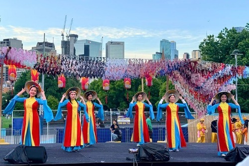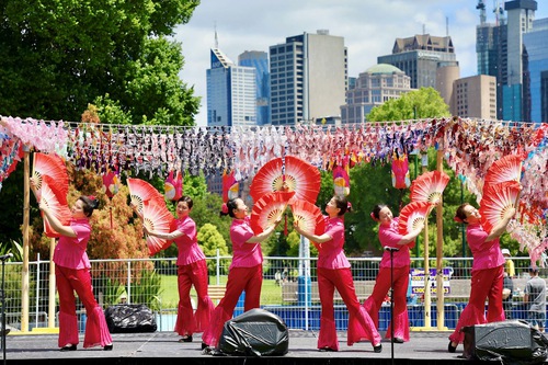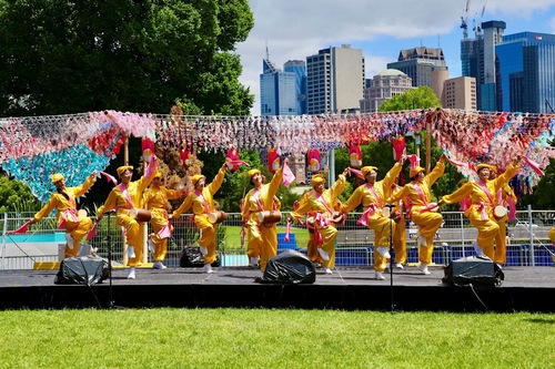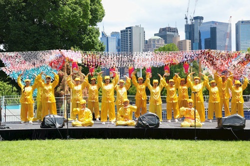 I praticanti della Falun Dafa sono stati invitati al festival, e sono saliti sul palco due volte, una nel pomeriggio e una la sera. Le esibizioni includevano dimostrazioni dei cinque esercizi della Falun Dafa, musica della Tian Guo Marching Band e tamburini, oltre a una danza del drago, una danza del ventaglio e una danza etnica con cappello di paglia. Le esibizioni hanno messo in mostra la bellezza e la gioia della cultura tradizionale orientale. Lo spettacolo serale ha attirato un vasto pubblico, ricevendo applausi entusiasti e acclamazioni da parte degli spettatori.