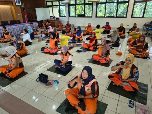 Sessione di esercizi di gruppo al Centro sanitario comunitario di Kampung Jabi a Batam