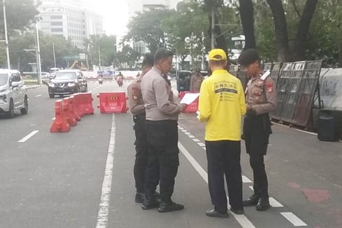 Dwi Harbowo, commissario di polizia e vice capo dell'ufficio di polizia del distretto di Gambir, si è recato allo stand dei praticanti, informando che gli agenti di polizia in servizio avrebbero garantito la sicurezza delle attività dei praticanti.