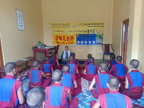 Molti di loro avevano subito abusi e trascuratezza o erano rimasti orfani. Quando la donna ha parlato delle difficoltà che i figli dei praticanti in Cina devono affrontare a causa della persecuzione, gli studenti hanno espresso la loro solidarietà e hanno compreso che i principi della Falun Dafa avevano aiutato quei bambini a superare il loro dolore. Ha poi insegnato agli studenti a ripetere in inglese e in hindi la frase: “ La Falun Dafa è buona, Verità-Compassione-Tolleranza sono buone”.