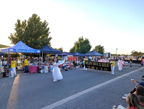 I praticanti hanno partecipato alla parata natalizia quella sera per presentare la Falun Dafa.