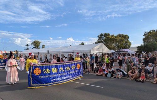 (Minghui.org) Quest’anno, i praticanti della Falun Dafa dell'Australia occidentale hanno partecipato a due parate natalizie, il 13 dicembre a Ellenbrook e il giorno successivo a Bunbury, dove hanno vinto il primo posto nella categoria Gruppo marciante.