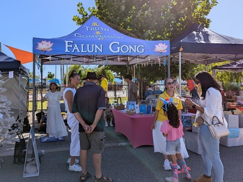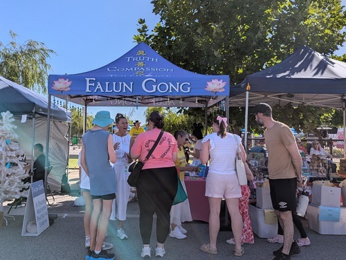 Il 13 dicembre i praticanti hanno allestito uno stand al festival natalizio di Ellenbrook, nell'Australia occidentale, e hanno parlato alla gente della Falun Dafa e della persecuzione in corso in Cina