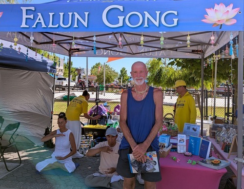 John Nagy si è avvicinato allo stand dei praticanti, e dopo aver visto tutti gli stand, gli ha detto: “Lo stand della Falun Dafa è il più luminoso di tutti”.