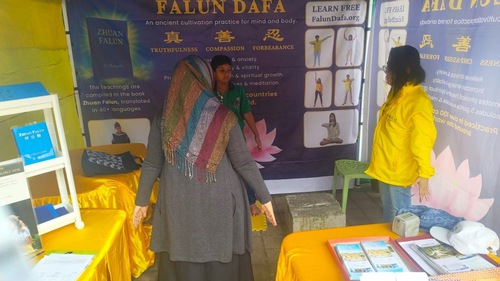 Sangeet, un'altra visitatrice, ha espresso gioia nel ricevere un segnalibro dai praticanti, e ha affermato: "Se tutti, me compresa e mia figlia, seguissero questa pratica, saremmo tutti veramente felici".