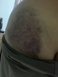Le ferite sulle braccia riportate dalla signora Zhang a causa della violenza della polizia durante il suo arresto