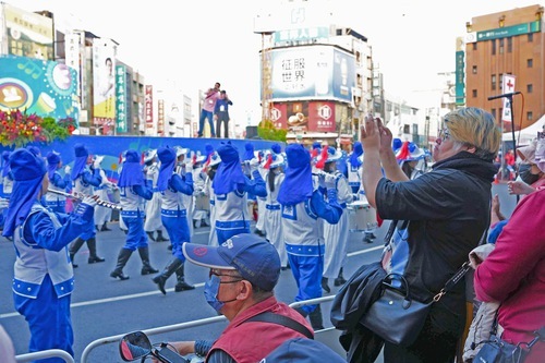 La Tian Guo Marching Band era composta da oltre 200 praticanti della Falun Dafa di tre generazioni diverse - anziani, adulti e giovani - e includeva anche praticanti provenienti dal Giappone. Sono stati accolti da applausi mentre la banda marciava lungo Zhongshan Road, dal Fountain Circle nel centro di Chiayi al Kano Park, lungo un percorso di quasi tre chilometri. La banda ha eseguito diversi brani, tra cui “La Falun Dafa è grande”, combinando la loro musica sacra e pura con passi sincronizzati, condividendo la bellezza della Falun Dafa con i partecipanti al festival.