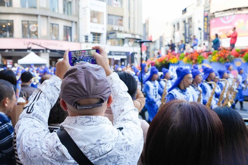 Il presentatore ha introdotto la banda: “L'esibizione della Tian Guo Marching Band è abbagliante e magnifica. Guidata dai principi di Verità, Compassione e Tolleranza, la banda suona musica pura, brillante e piena di energia, condividendo la bellezza della Falun Dafa con il mondo”. Gli spettatori su entrambi i lati della strada hanno salutato con entusiasmo la banda mentre sfilava.