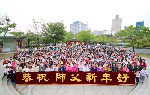 I praticanti delle contee di Taoyuan, Hsinchu e Miaoli si sono riuniti al Parco Culturale di Zhubei per augurare al Maestro Li un felice anno nuovo