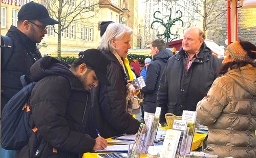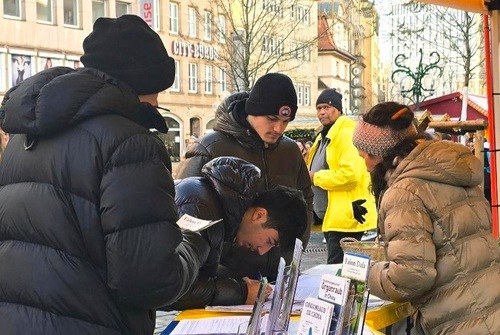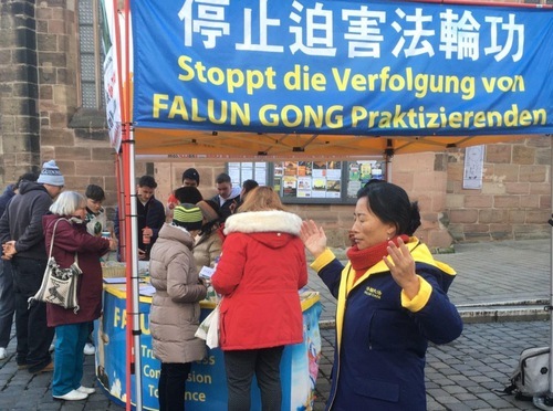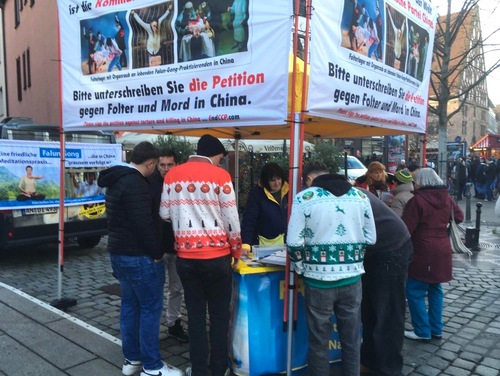 Era l'ultimo fine settimana prima di Natale e il famoso Mercatino di Natale di Norimberga era pieno di turisti. In questa occassione molte persone hanno firmato la petizione che chiedeva la fine della persecuzione da parte del PCC e incoraggiava i praticanti a perseverare nei loro sforzi.